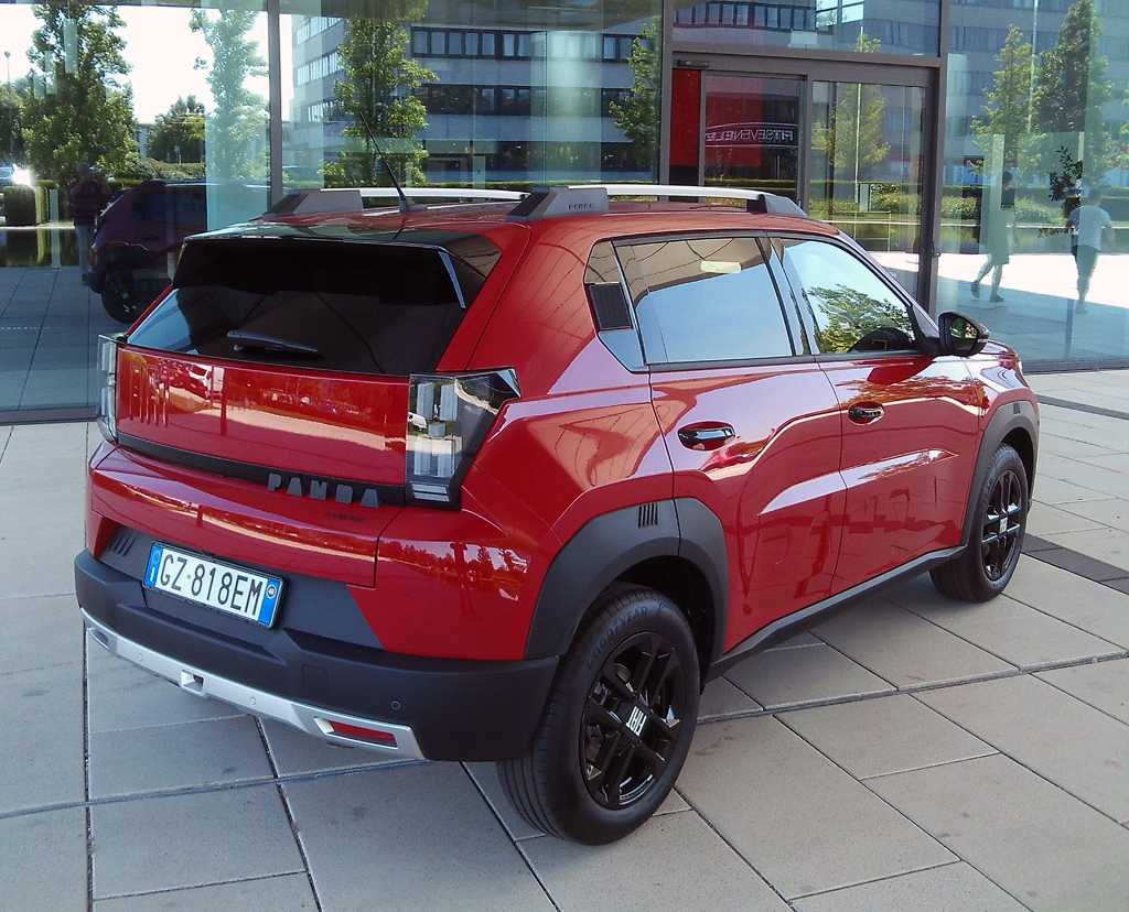 Das Auto: Trotz Grande bleibt es beim Kleinwagen. Modelle wie Citroën C3 und C3 Aircross teilen sich auf Konzernebene die Plattform mit dem neuen, nun vor allem deutlich länger bauenden Panda. Zu den Konkurrenten sonst zählen etwa Dacia Sandero und Hyundai Inster. Schon optisch nimmt der große Panda Anleihen beim kleineren, interpretiert sie nur moderner. Der fünftürige Fünfsitzer, in Serbien gebaut, solide verarbeitet und qualitativ zumindest standesgemäß anmutend, ist 3,99 (vorher 3,38) Meter lang, 1,76/2,01 Meter breit und 1,80 Meter hoch, verfügt über 2,54 Meter Radstand und einen Kofferraum, der immerhin noch bis zu 361 bis 1315/1366 Liter Gepäck fasst. Die Hybridversion bringt 1390, die Elektroversion 1532/1554 Kilo auf die Waage. Innen geht es geräumiger zu. Platz ist vorn ordentlich vorhanden. Das ovale Armaturenbrett mit 10- und 10,25-Zoll-Display soll an die Rennstrecke auf dem Dach des historischen Turiner Fiat-Werks im Stadtteil Lingotto erinnern. Das moderne Cockpit ist Insgesamt doch ziemlich übersichtlich gestaltet.