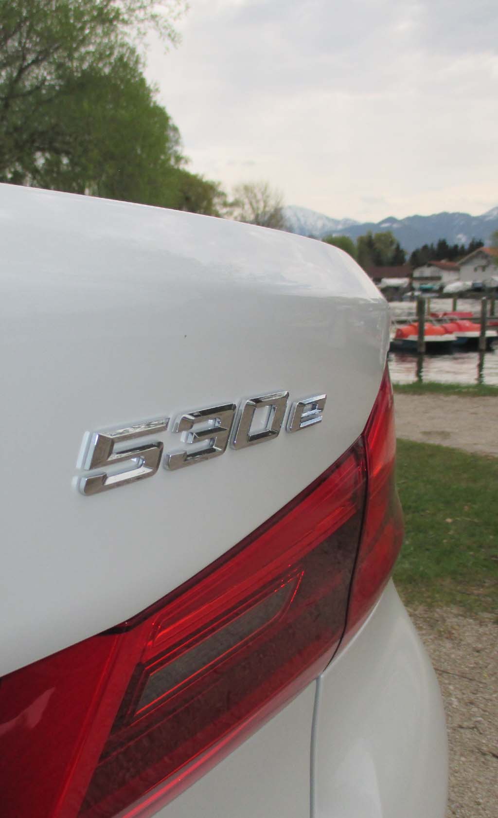 Die Ausstattung: Die ist von der intuitiveren Bedienung bis hin zur Möglichkeit der Gestensteuerung weitgehend identisch. Jedoch fährt der 530e iPerformance vorn mit blauen Nieren-Zwischenstäben und an den Seiten mit blauen Radnabenabdeckungen vor. Die Einstiegsleisten sind mit dem eDrive-Schriftzug für elektrifiziertes Fahren versehen. Es gibt eine spezifische Instrumentenkombination. Als Plug-in-Hybrid hat dieser 5er besondere eDrive-Dienste und intelligente Ladeservices an Bord. Auch im eDrive-Modus sind alle Fahrerassistenzsysteme der Baureihe verfügbar. Ab Werk lassen die Münchner ebenfalls den 530e iPerformance auf 17-Zoll-Leichtmetallrädern mit 225er-Reifen vom Band rollen.