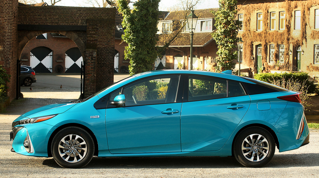 Das Auto: Schon 2012 haben die Japaner ihre Plug-in-Hybrid-Technologie im Prius in Großserie produziert. Die 4,64 Meter lange, solide verarbeitete und für die Mittelklasse recht wertig anmutende Neuauflage, die inzwischen auch optisch durchaus etwas mehr gewinnen kann, länger, breiter und flacher baut, ist der nächste Schritt der Marke hin zum Ziel, bis 2050 den Kohlendioxidausstoß aller Toyota weltweit um 90 Prozent gegenüber 2010 zu verringern. 2,70 Meter Radstand erlauben selbst im Fond ganz ordentlich Platz. Das Stauabteil fasst 360 bis dachhoch bei umgelegten Rücksitzen sogar 1204 Liter Gepäck. Im eher puristischen Cockpit geht es sehr übersichtlich zu, doch muss man sich an die Bedienung erst gewöhnen.