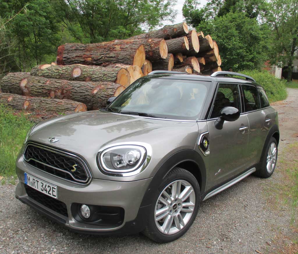 Das Auto: Es fährt wie seine Serienbrüder auf 4,29 Metern Länge sauber verarbeitet vor, mutet wertig an. Platz ist in dem größten Modell der Marke bei 2,67 Metern Radstand selbst im Fond noch ganz ordentlich vorhanden. Fasst der Kofferraum beim normalen Countryman 450 bis 1390 Liter, lassen sich im Plug-in-Hybrid aber nur 405 bis 1275 verstauen. Grund sind die zusätzlichen Elektrokomponenten im Heck, die den trotzdem fünfsitzigen Teilzeitstromer auch 150 Kilo schwerer machen, so dass er 1660 Kilo auf die Waage bringt. Die 35 900 Euro Einstiegspreis bewegen sich auf demselben Niveau wie bei der nach dem John-Cooper-Works-Spitzenmodell teuersten Variante der Baureihe, dem Allraddiesel Cooper SD mit 190 PS.