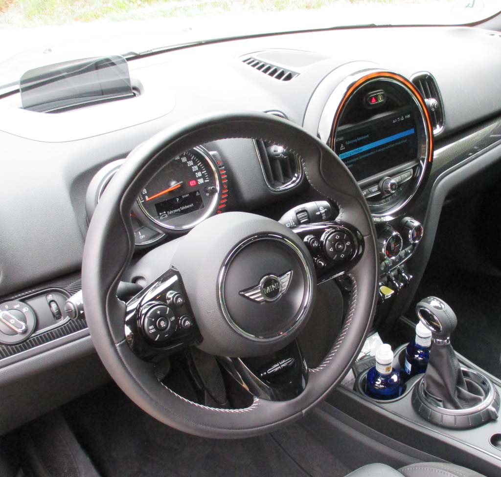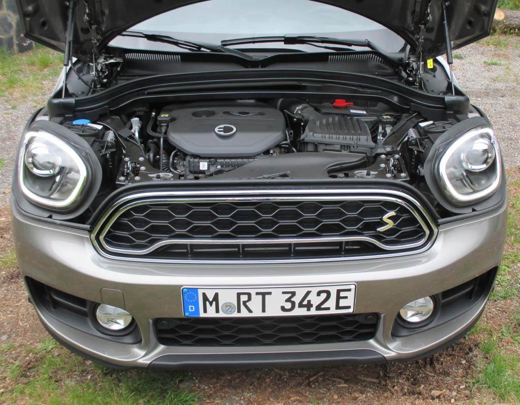 Die Ausstattung: In der sind über das Countryman-Basispaket hinaus neben besonderen Designelementen wie dem Kühlergrill in Wabenstruktur mit Chromumrandung oder dem E-Emblem auf dem Klappdeckel der Ladesteckdose vorn links und am Heck etwa auch schon Sportlederlenkrad, Radio, Navigation, Vernetzung und 17-Zoll-Leichtmetallräder mit 225er-Reifen enthalten. Spezielle E-Instrumente mit Anzeigen fürs Boosten, also für die Doppelbeschleunigung durch Verbrennungs- und Elektromotor, sowie für die Rückgewinnung von Energie ersetzen den Drehzahlmesser.