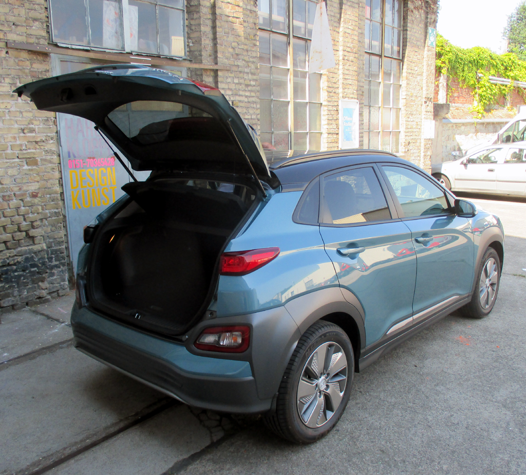 Das Fahren: Spaß beim Fahren dieses kleinen schnurrenden Lifestyle-Stromers, der lokal keinerlei Schadstoff ausstößt, stellt sich durchaus ein! Besonders die quasi schon aus dem Stand verfügbare Durchzugskraft beeindruckt bei Autos dieser Art immer wieder. Das Fahrwerk federt komfortabel. Die elektrisch unterstützte Lenkung könnte direktere Rückmeldung geben. Die Scheibenbremsen, vorn innenbelüftet, verzögern standfest. An einer 100-Kilowatt-Station soll das Nachladen auf bis zu 80 Prozent des Energievorrats weniger als einer Stunde dauern. Getriebe und Parkbremse sind per Tastendruck bedienbar. Die Klimaautomatik arbeitet dank Wärmepumpe effizient. Bremsenergie lässt sich dank der Paddel am Lenkrad variabel zurückgewinnen.