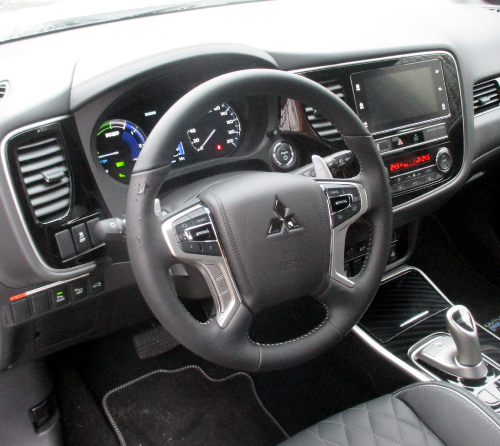 Das Fahren: Bei uns hat der Bordcomputer am Ende nach eher moderater Stadt- und Landstraßenfahrt sogar nur einen Benzinkonsum von 1,5 Litern angezeigt, bedingt durch das Fahrprofil im Bergischen Land allerdings doch auch 25,2 Kilowattstunden Strom. Der leer bis zu 2015 Kilo schwere Plug-in-Hybrid lässt sich dank Dreifachkraft trotzdem noch vergleichsweise leichtfüßig, im seriellen wie auch im parallelen Hybridmodus außerdem auf deutlich niedrigerem Drehzahlniveau bewegen und kraftvoller beschleunigen. Selbst beim Geräuschkomfort scheint der vorher schon recht kultivierte Outlander, der Lasten bis 1500 Kilo ziehen kann, zugelegt zu haben. Die Servolenkung könnte weiter direktere Rückmeldung geben. Die Scheibenbremsen, vorn innenbelüftet, packen standfest zu.