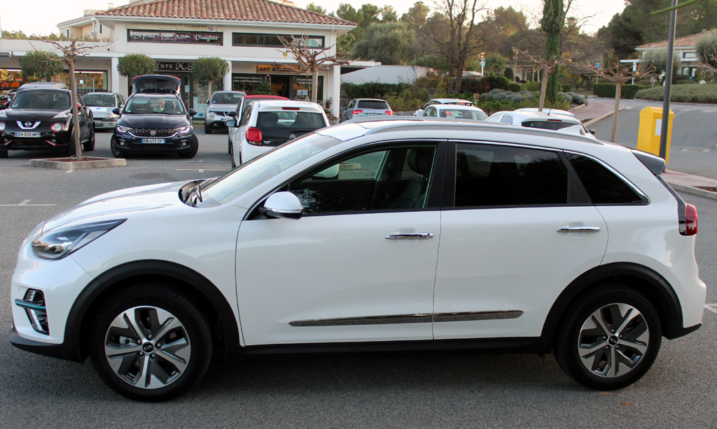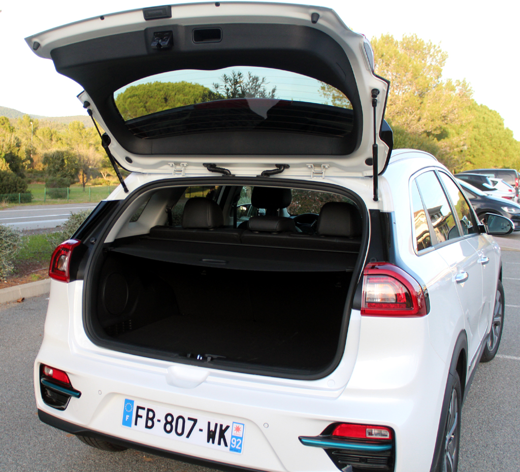Das Auto: Nach dem Hybrid und Plug-in-Hybrid ist der e-Niro, solide verarbeitet, für die untere Mittelklasse recht wertig anmutend, 4,38 Meter lang, Radstand 2,70 Meter, Kofferraum 451 bis 1405 Liter, bereits das dritte Modell dieser Baureihe mit alternativem Antrieb. Zu den auffälligsten speziellen Erkennungsmerkmalen gehört außen der geschlossene Kühlergrill, innen der Gangwahl-Drehschalter, der den herkömmlichen Wählhebel ersetzt. Dass er alltagstauglich ist, beweist der neue Kia-Stromer, dessen Batterie platzsparend im Boden integriert ist, durch sein vergleichsweise großzügiges Raumangebot. Das Cockpit ist sehr übersichtlich gestaltet. Für die Eingewöhnung in die Bedienung sollte am Anfang etwas mehr Zeit nehmen, auch weil es ein Elektroauto ist.