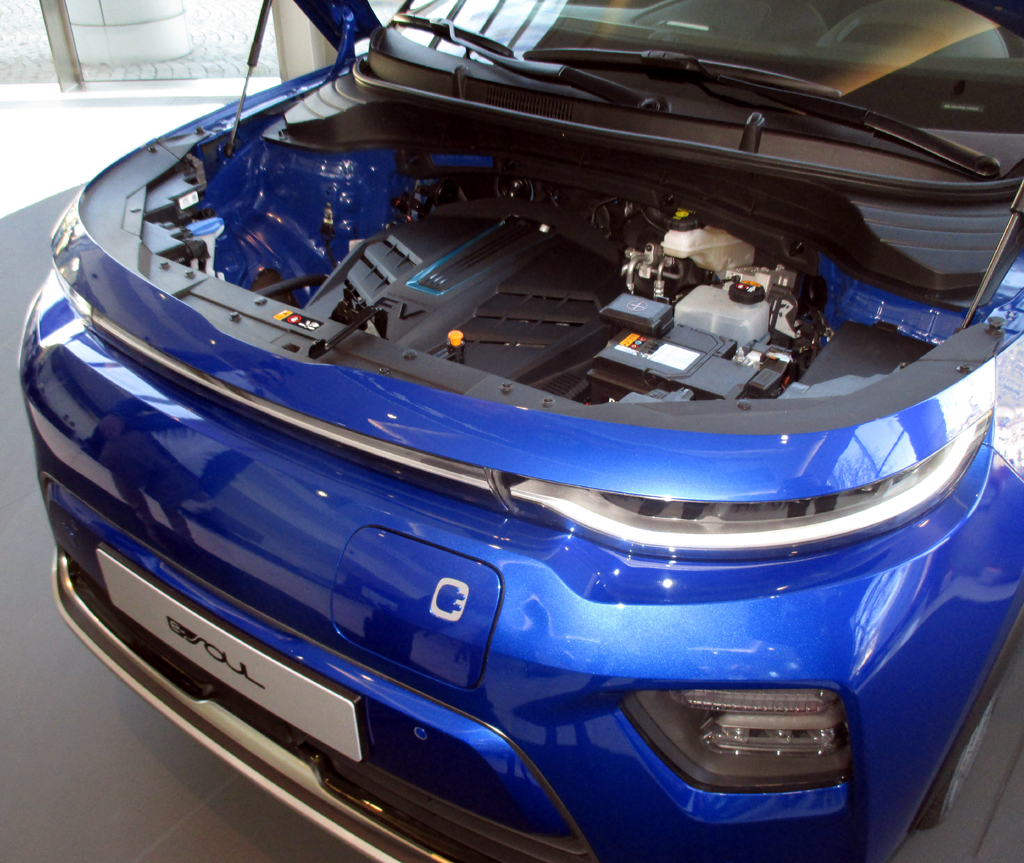 Das Fahren: Federbeine vorn und Mehrlenkerachse hinten stehen für eher komfortablere Fortbewegung des fünftürigen Fünfsitzers, der über 2,50 Meter Radstand verfügt und leer immerhin doch 1610 bis 1833 Kilo auf die Waage bringt. Im Sportmodus lebt der sonst eigentlich ziemlich vernünftige Stromer auf. Der tiefere Schwerpunkt sorgt wie beim Niro mit demselben Elektroantrieb für höhere Stabilität in Kurven. Trotz kastenförmigem Soul-Aufbau hält sich die Wankneigung dort in Grenzen. Die elektrische Lenkung mit Gegenlenkunterstützung könnte direktere Rückmeldung von der Straße geben. Die Scheibenbremsen, vorn innenbelüftet, packen dagegen standfest zu.